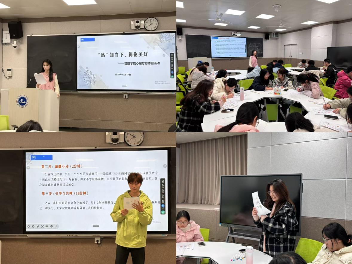 (通讯员 王岩 祁桐进)为响应学校心理健康教育工作号召,帮助学生提升情绪调适与自我关怀能力,yl6776永利集团于12月17日晚19:00在8号楼B201教室举办了“感知当下,拥抱美好”心理疗愈体验活动。本次活动通过轻松丰富的觉察训练,引导学生在专注体验中缓解学业压力、提升情感表达与自我觉察能力,营造出温暖包容、相互支持的成长氛围。