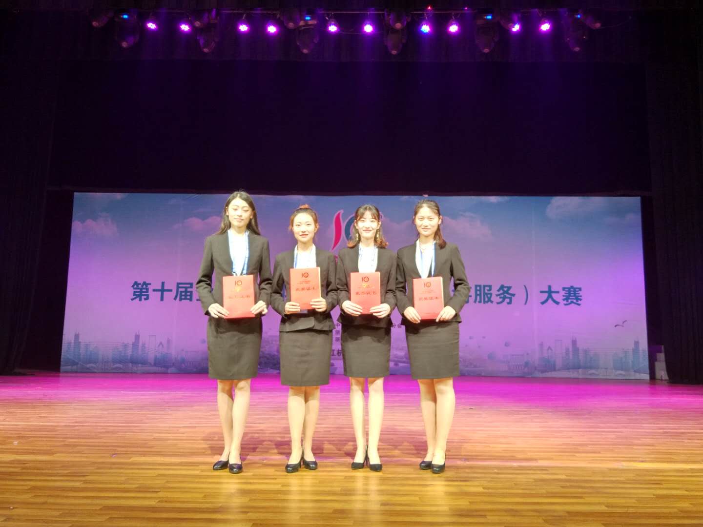(通讯员 张红珍)2018年5月10-13日,第十届“鼎盛诺蓝杯”全国旅游院校服务技能(导游服务)大赛,在浙江省旅游职业学院落下帷幕。经过激烈的角逐,我校杨嘉琪、王苗苗、王思琪、马蕾等四名参赛选手分别荣获中文组二等奖两名,英文组一等奖及英文组二等奖各一名,并夺得团体一等奖的佳绩。