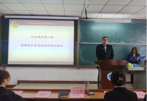 大会在庄严肃穆的国歌声中拉开帷幕。会上,李思源致开幕词,他指出:希望各位学生干部,要充分发挥先锋模范带头作用,尽心尽责的为同学们服务,要坚持从学生中来,到学生中去。进一步深入实践,在实践中开拓进取,锐意创新,服务同学,服务社会。在平时的学习和工作中,要不断创新理念,拓宽思路和方法,打造优秀的学生活动品牌项目,为我院的学生工作更上一层楼而努力奋斗!