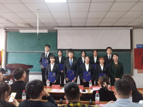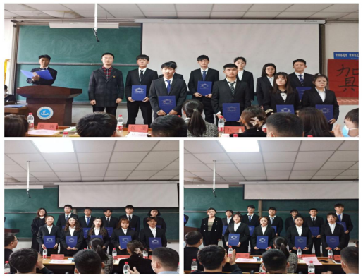 辅导员老师郑巍、李文雅、石一涵为各部门部长颁发聘书