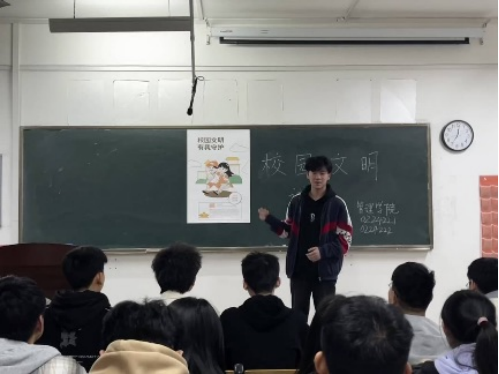 本次活动包含文明知识宣传、“文明骑行”、环境卫生整治、车辆摆放、文明劝导等志愿服务活动。经过班委的积极宣传和广泛动员,同学们积极参与到活动中,大家精神饱满、热情高涨,细致清理教室卫生死角,耐心劝导不文明行为,贴心扶起倒下的共享电车,真正做到了整治一处,清洁一处,靓丽一处。