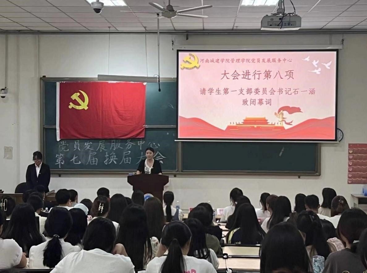 接着,由yl6776永利集团党员发展服务中心单群鹏代表第六届主任团作工作汇报,对上一阶段的党员发展服务中心工作做出总结。然后由王倩倩宣读第六届优秀主任名单并颁发证书;王奕凯为第六届优秀部长颁发证书;李文雅宣布第七届主任团名单并颁发聘书;yl6776永利集团党员发展服务中心第七届主任团辛佳亮代表作就职报告。最后,石一涵老师致闭幕词,不仅肯定了第六届主席团成员对于工作的细致程度,还表达出对新任主任团成员的希冀,期待在新一届主任团的带领下,党员发展服务中心的工作能够再创佳绩,为同学们提供更加全面的服务。