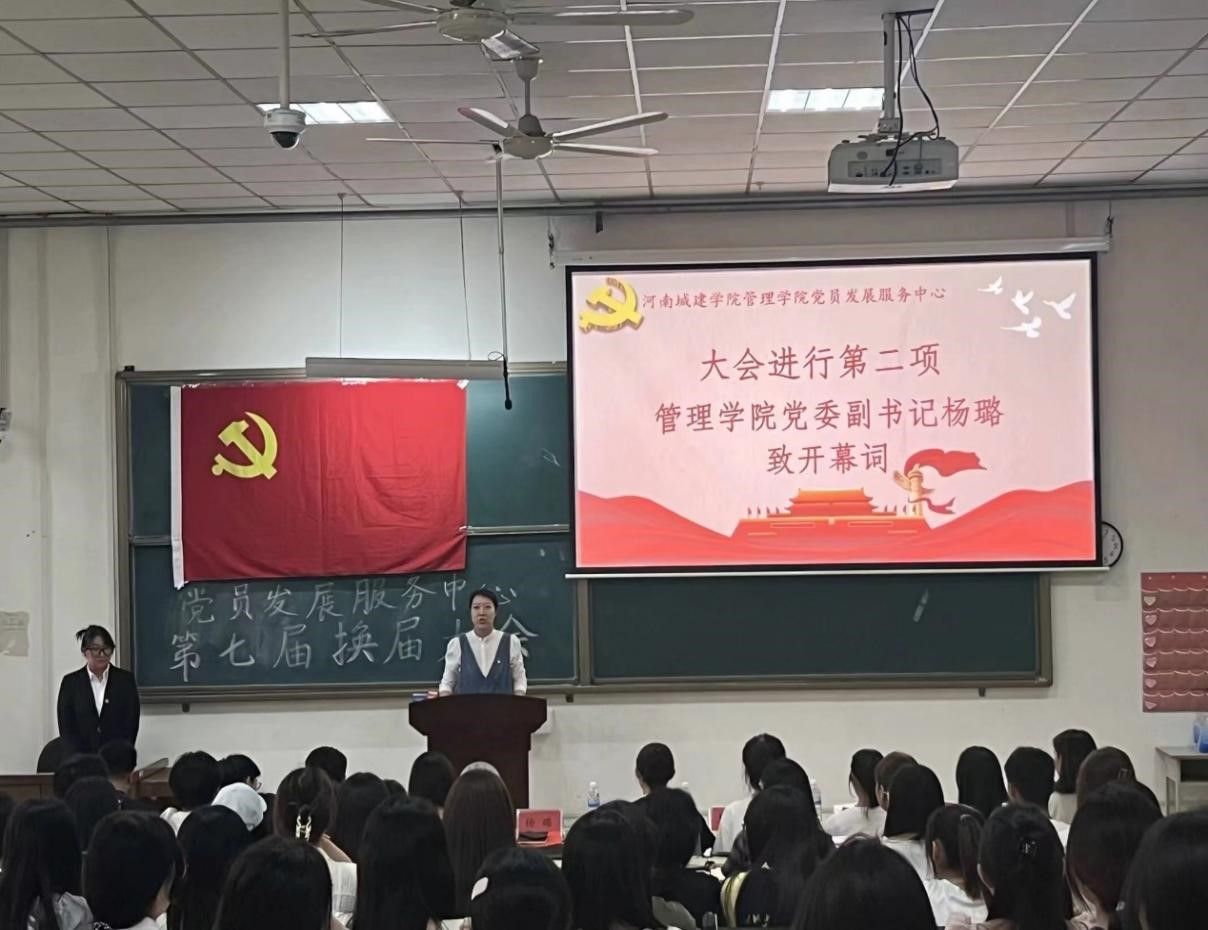 换届大会在庄严的国歌声中拉开序幕。首先,杨璐致大会开幕词,她向莅临本次大会的各位老师和同学表示热烈的欢迎和诚挚的感谢,既肯定了第六届党员发展服务中心全体学生干部付出的辛苦努力和取得的成绩,也对继任的第七届学生干部提出了殷切的希望,希望新一届学生干部能不断加强对学生工作的服务意识,努力成为有理想、有本领、有担当的优秀新时代青年。