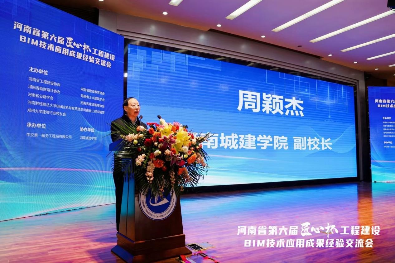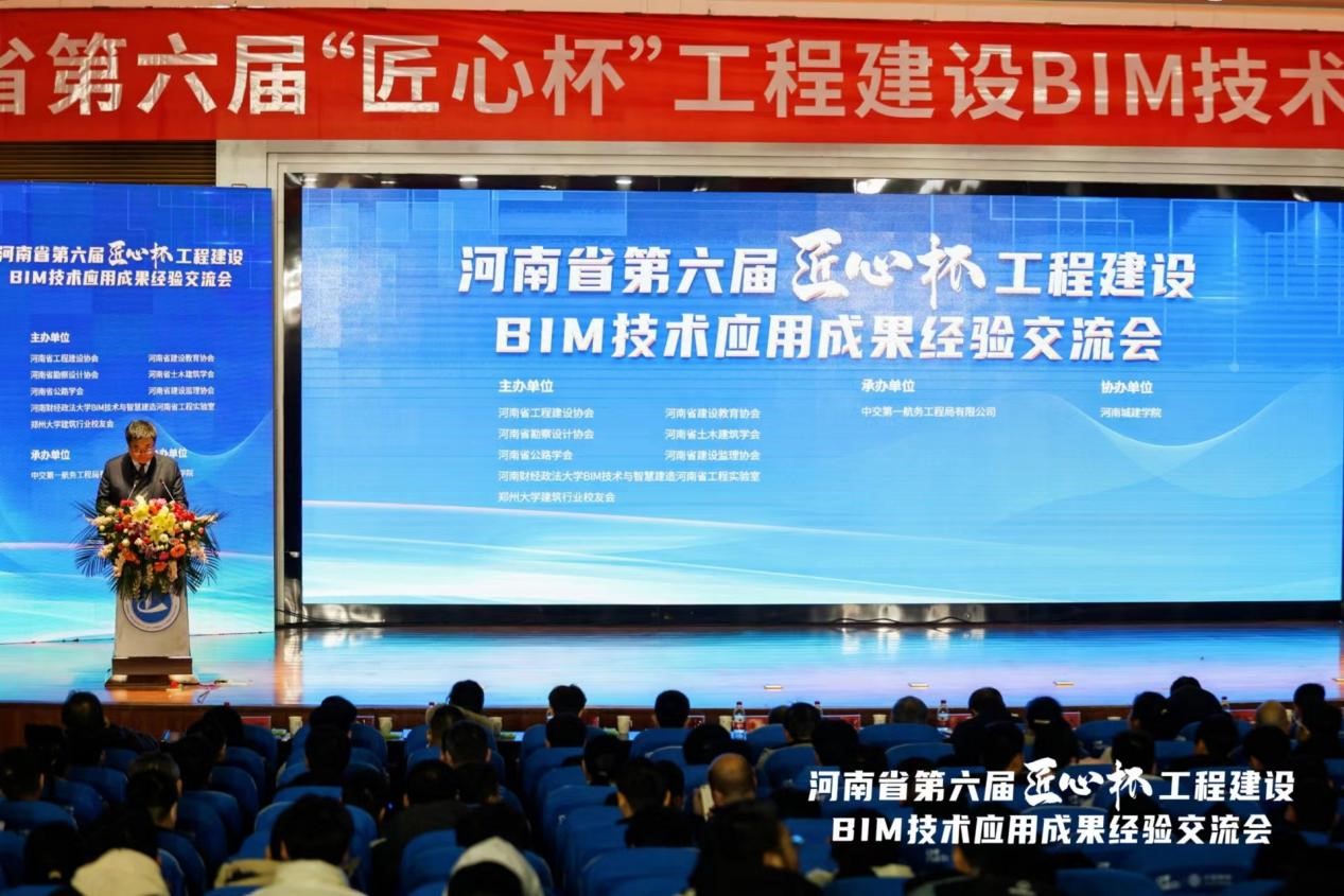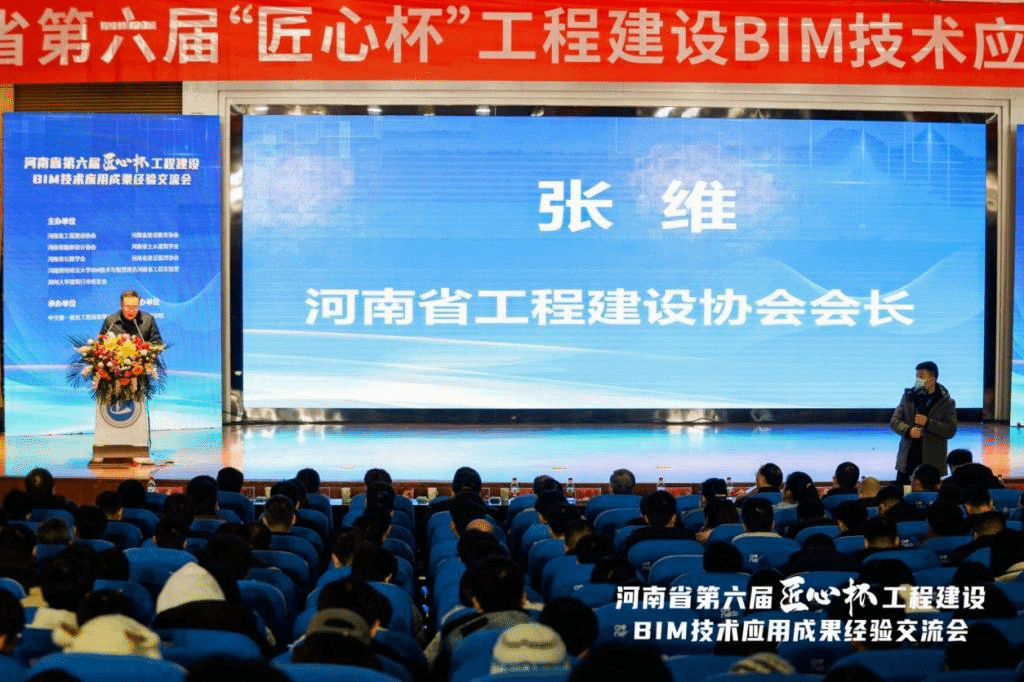 (通讯员 朱渴望 刘思璐)12月27日上午,由河南省工程建设协会联合河南省建设教育协会、河南省勘察设计协会、河南省土木建筑学会、河南省公路学会、河南省建设监理协会等八家单位主办的河南省第六届“匠心杯”工程建设BIM应用成果经验交流会在我校行政楼学术报告厅成功举办。河南省工程建设协会会长张维、河南省建设教育协会会长崔恩杰、河南省土木工程学会理事长王召东、河南省勘察设计协会秘书长李帅敏、河南省公路学会秘书长王春江、郑州大学建筑行业校友会秘书长马红莉等领导以及在此次比赛中获得优异成绩的企业代表、高校代表500余人参加会议,我校副校长周颖杰出席交流会并致辞。