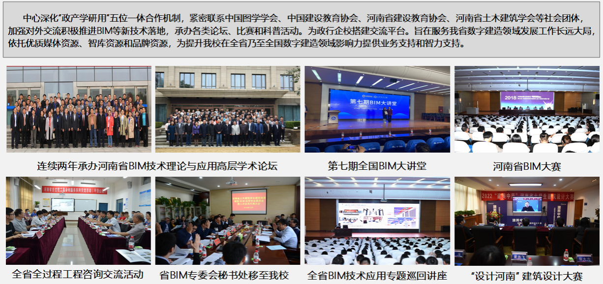 1.产学研融合的培养模式:该专业针对行业人才需求,依托河南省信息技术产业的快速发展,形成“产学研”良性循环,培养相关产业的骨干人才。以中建、中平能化集团等行业龙头企业作为实践培养基地,以河南省数字建造工程技术研究中心、河南省全过程工程咨询工程技术研究中心为专业点支撑平台,聘任行业协会和企业专家为客座教授。在面向智能装备、智能设计、智能运维与研发等多元化需求的产学研融合的培养模式下,不仅要求学生掌握传统建筑工程的基本理论和基本技能,还注重与智能建造工业化及信息化相关的现代应用技术能力的培养,旨在培养兼具工程智慧运维相关自然科学知识与人文精神素养的科研创新人才。